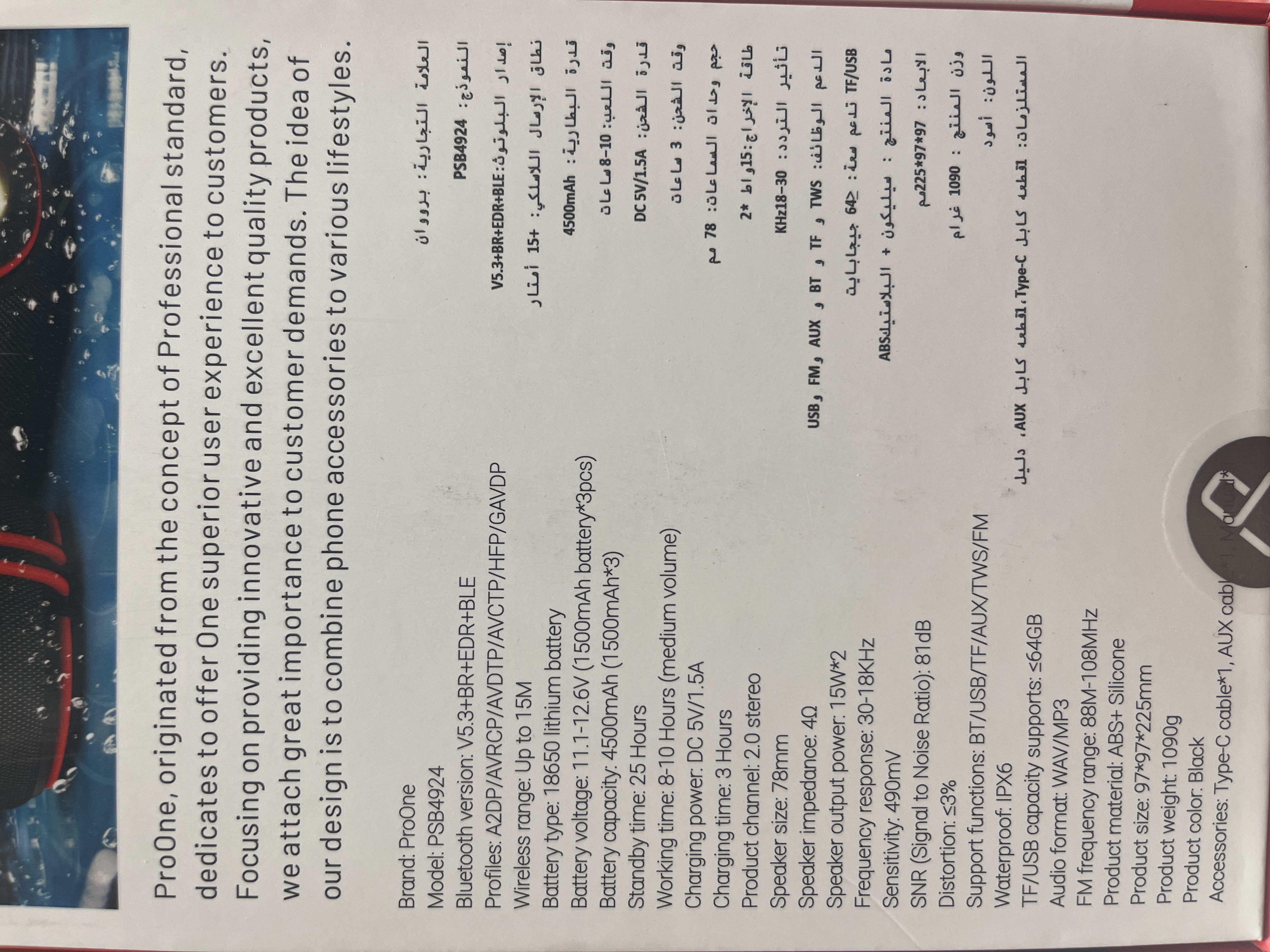 ProOne PSB4924 portable wireless speaker